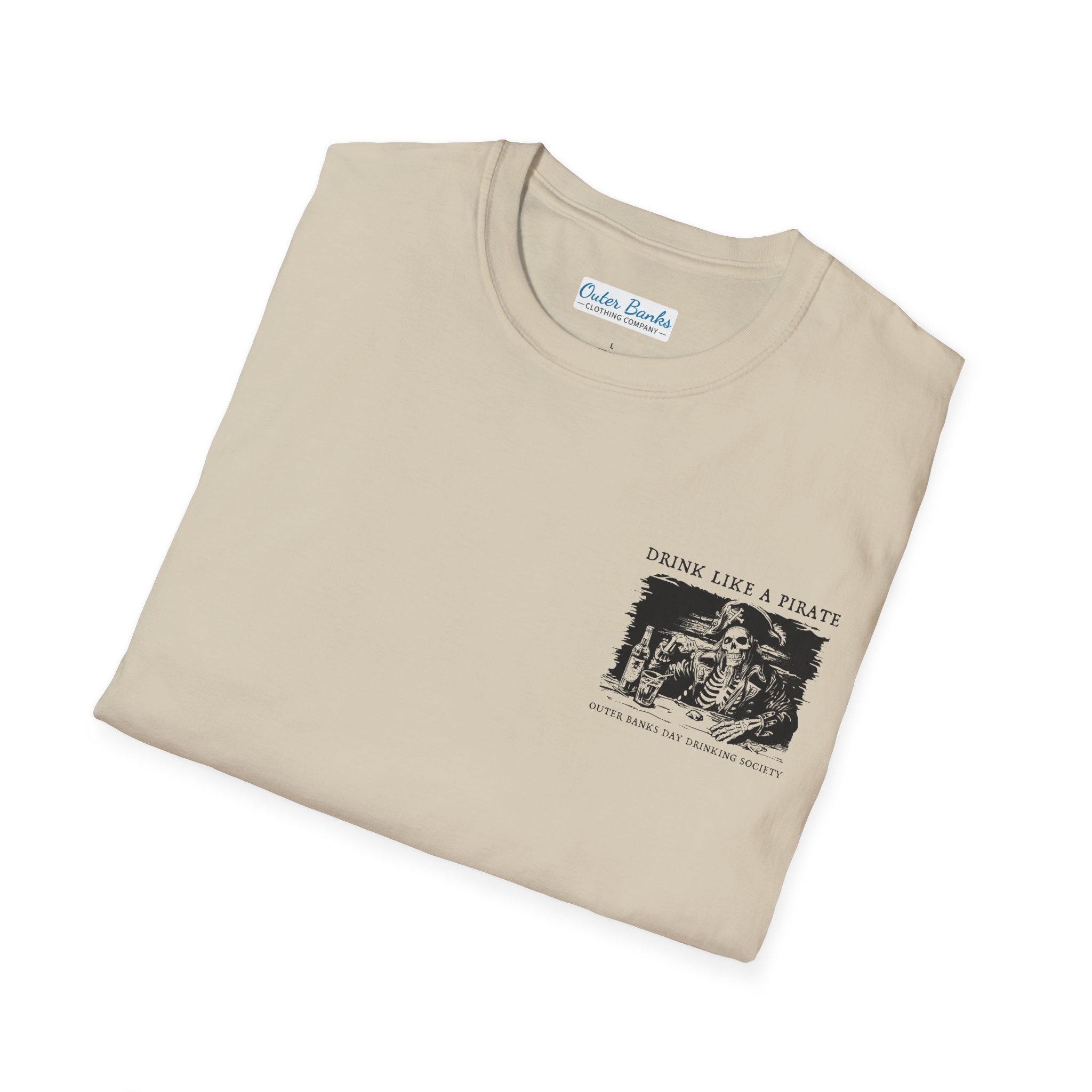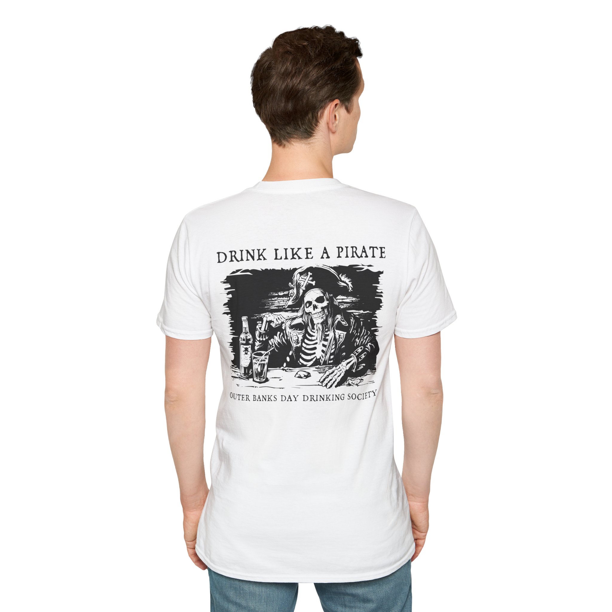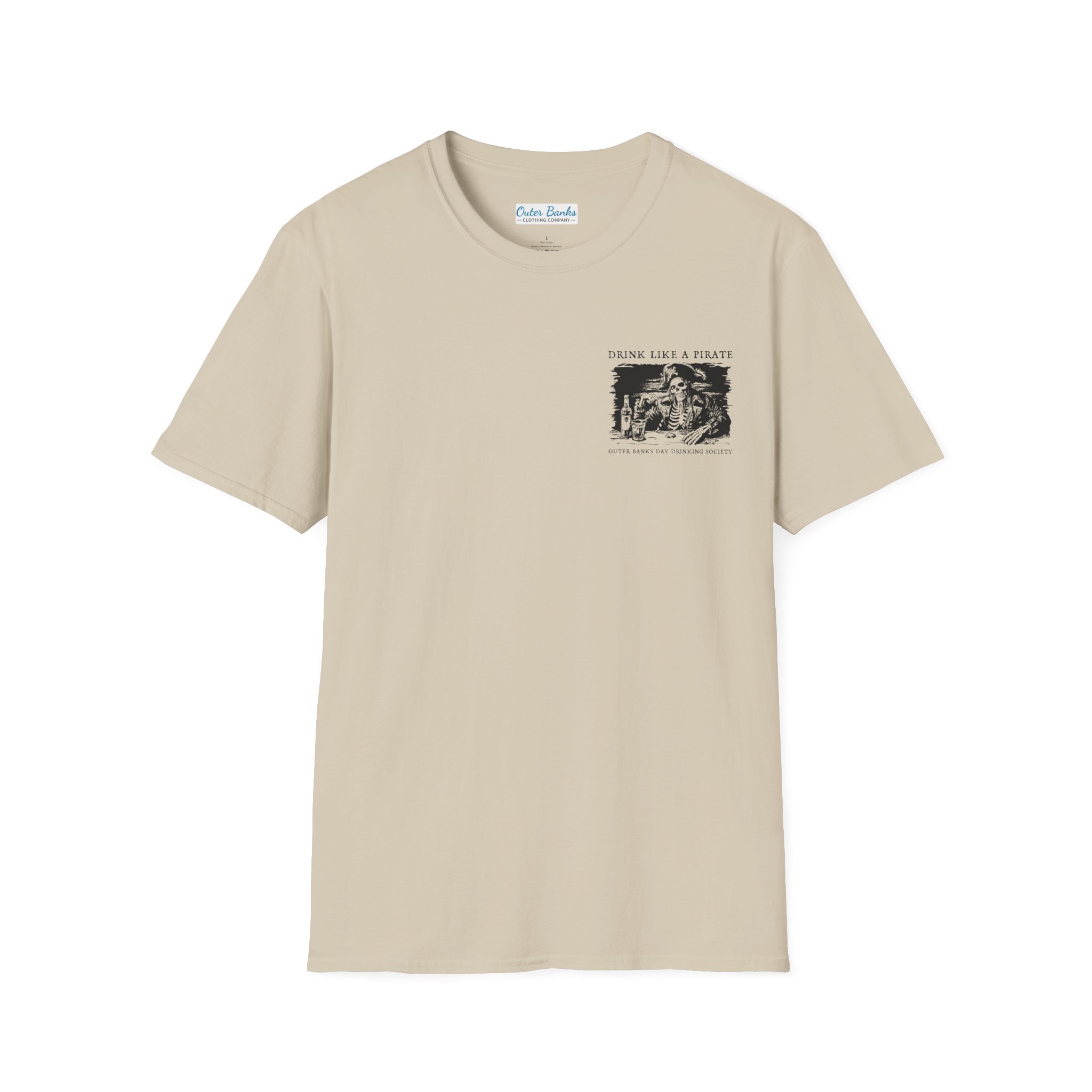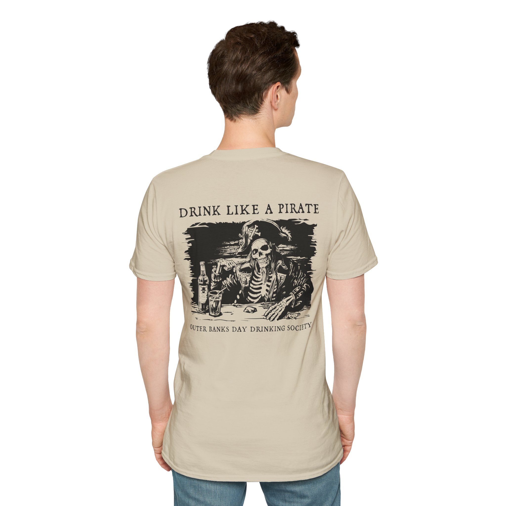 The unisex soft-style Drink Like A Pirate Shirt by Outer Banks Day Drinking Society is your ultimate ticket to casual comfort with a bold twist. Crafted from 100% cotton, this tee boasts unbeatable softness in solid colors, making it perfect for beach days, bar hopping, or sipping rum like a true Outer Banks pirate. The shoulders are reinforced with twill tape for durability, so it’s ready for all your adventures, whether you’re exploring the OBX or just lounging in paradise. With no side seams, this shirt moves with you, and the ribbed collar ensures it won’t curl, even after a long day of day drinking.