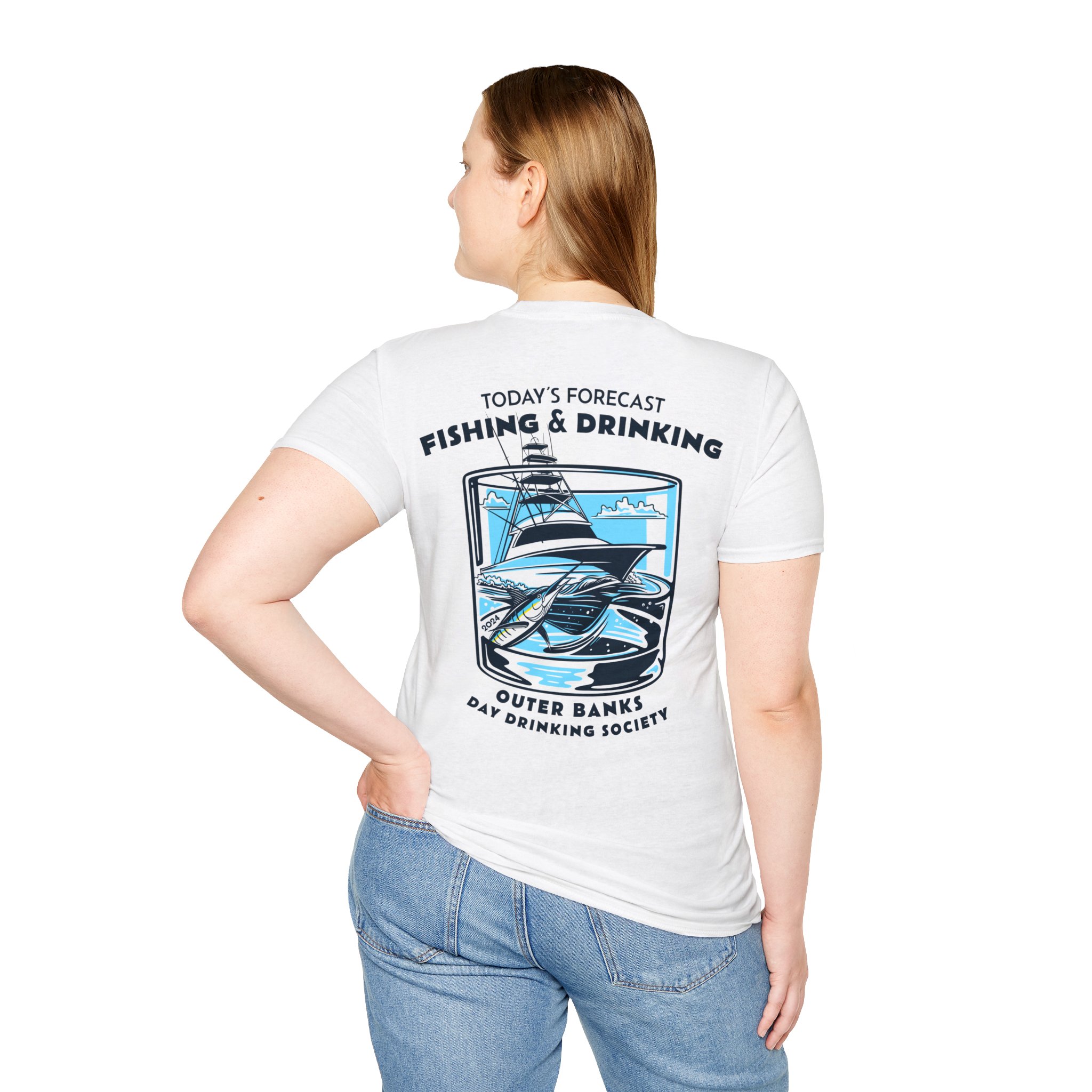 In the Outer Banks, fishing and drinking aren’t just activities—they’re rituals. The Outer Banks Day Drinking Society embodies this spirit, living every moment to the fullest, with a drink in hand and the sea breeze in their hair. And what better way to show your dedication than with our fishing and drinking unisex soft-style Outer Banks fishing shirt? This tee puts a new spin on casual comfort.